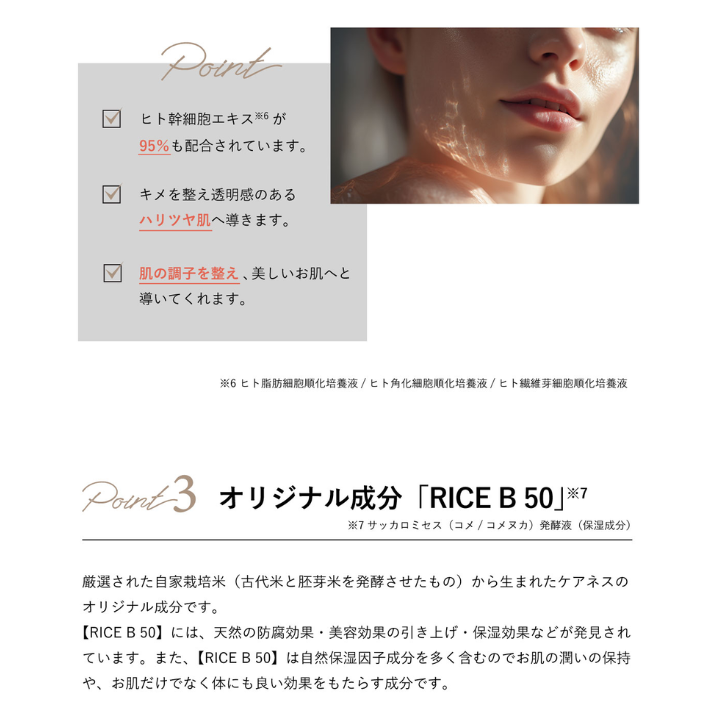 ②ヒト幹細胞順化培養液のパワーを7倍に引き上げる特許オリジナル成分 RICE B50配合